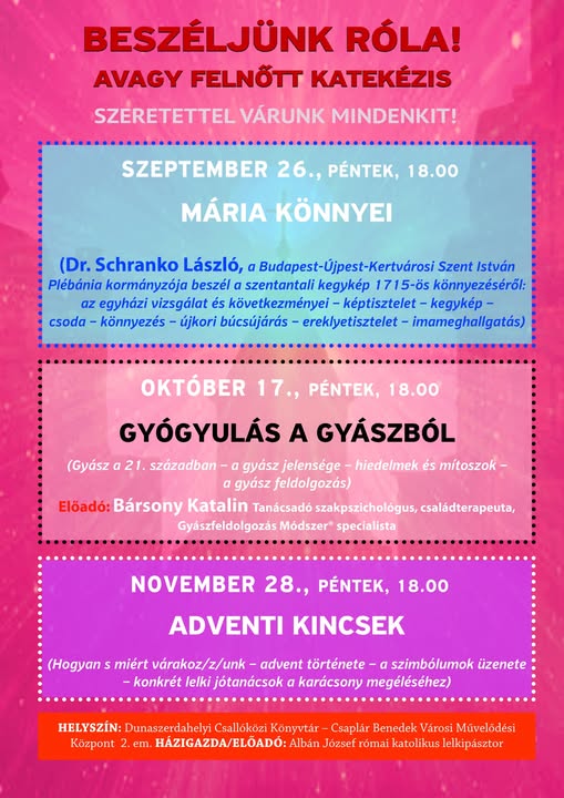 BESZÉLJÜNK RÓLA! avagy FELNŐTT KATEKÉZIS! (2025 utolsó negyedév)